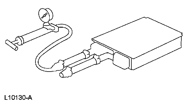 8. If the pressure drops, check the heater water hose connections to the core tubes for leaks. If the heater water hoses do not leak, remove the heater core from the vehicle and carry out the bench test.