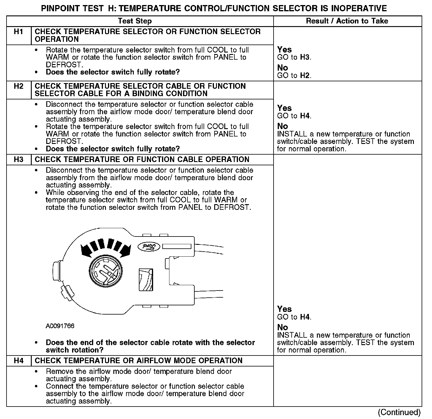 PINPOINT TEST H: TEMPERATURE CONTROL/FUNCTION SELECTOR IS INOPERATIVEH1-H4: