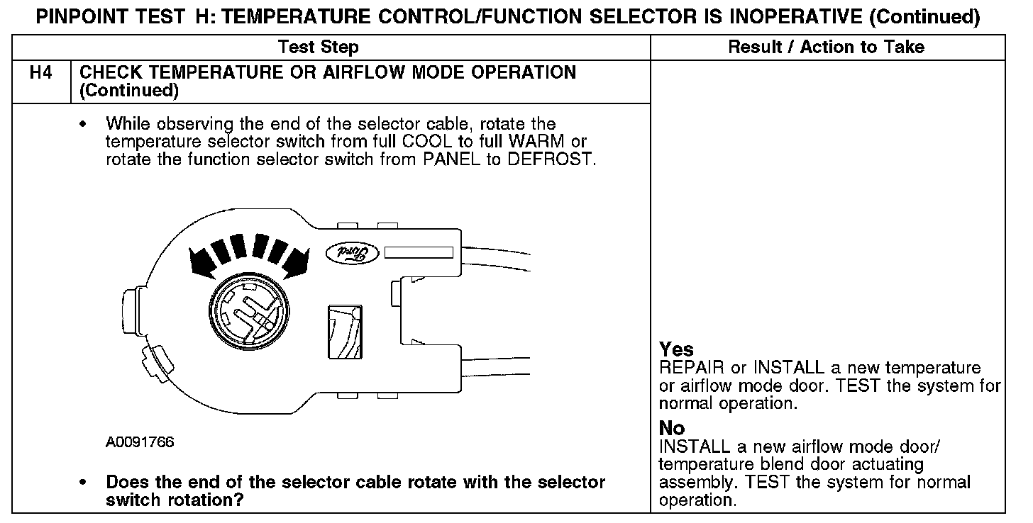 Test H: Temperature Control/Function Selector Is Inoperative
