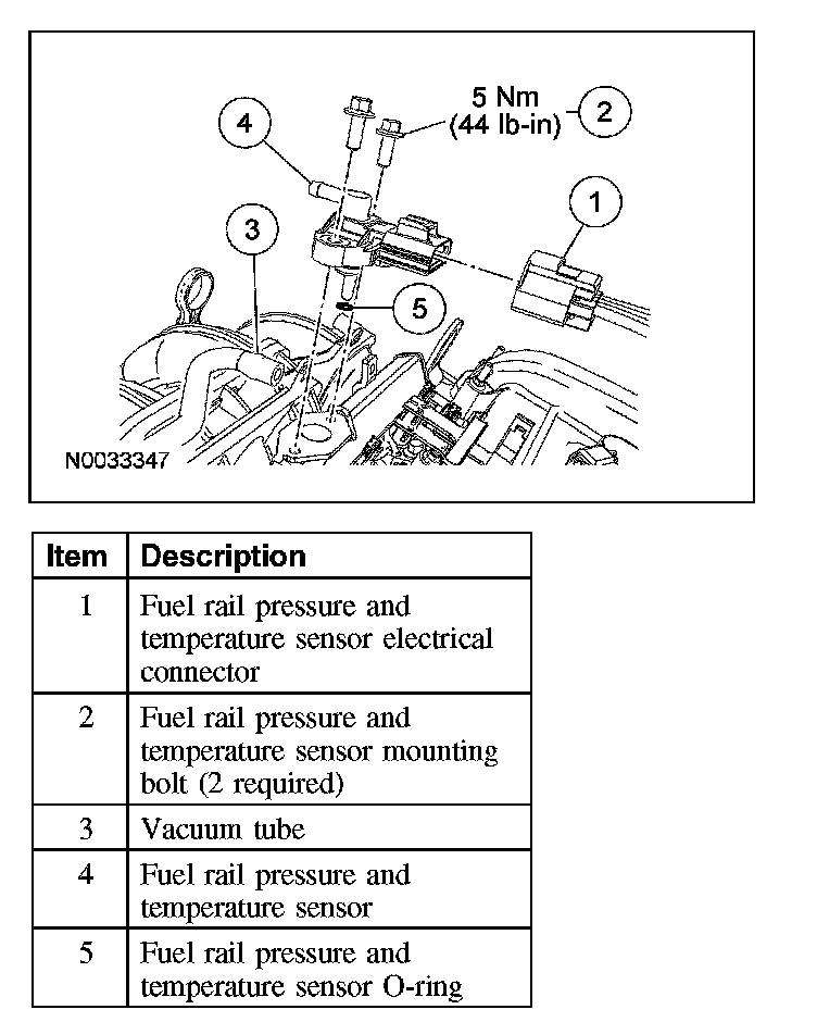 5. CAUTION: Be sure that the fuel rail pressure and temperature sensor is correctly aligned when re-installing to avoid damage to the O-ring.