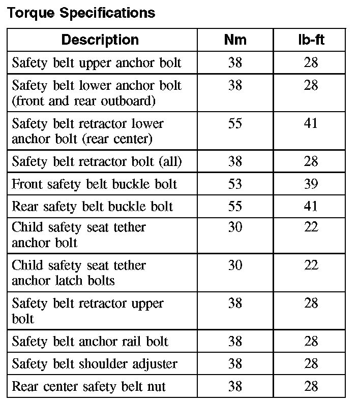 Seat Belt Systems: Specifications