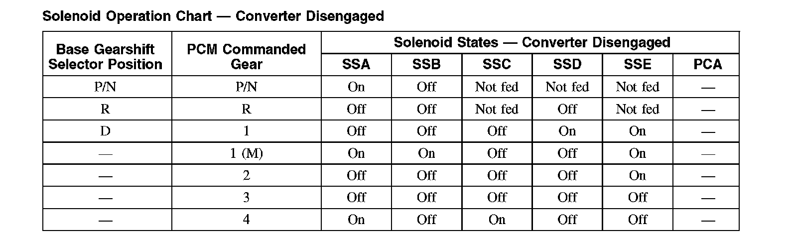 Solenoid Operation Chart - Converter Disengaged