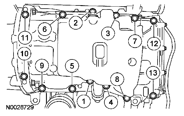 Tighten the oil pan bolts in the sequence shown.