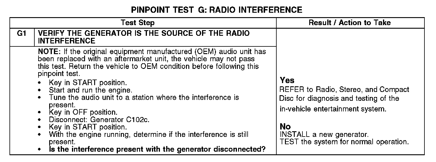 PINPOINT TEST G: RADIO INTERFERENCEG1: