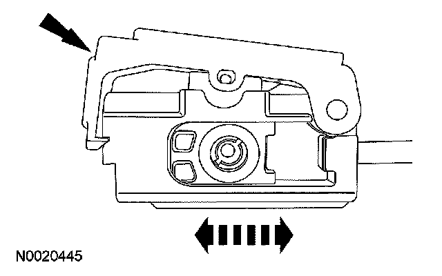 6. NOTE: When installing the shift cable, make sure that the shift cable locking tabs are locked in place and the cable end is snapped onto the ball stud. Press the shift cable into the bracket and listen for the cable to click in place. Pull back on the shift cable to make sure that it is locked into the bracket. Also make sure that the shift cable end is correctly installed onto the ball stud. Pull back on the shift cable end to make sure that the cable end is correctly installed.