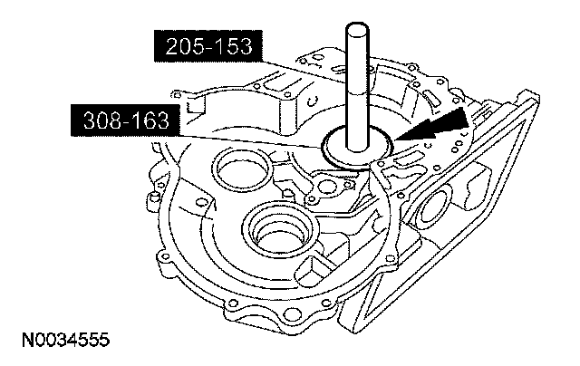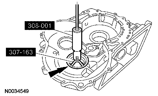 1. NOTE: The converter housing side bearing cups for the transfer shaft bearing and differential case bearing will be installed during the assembly of the transaxle.