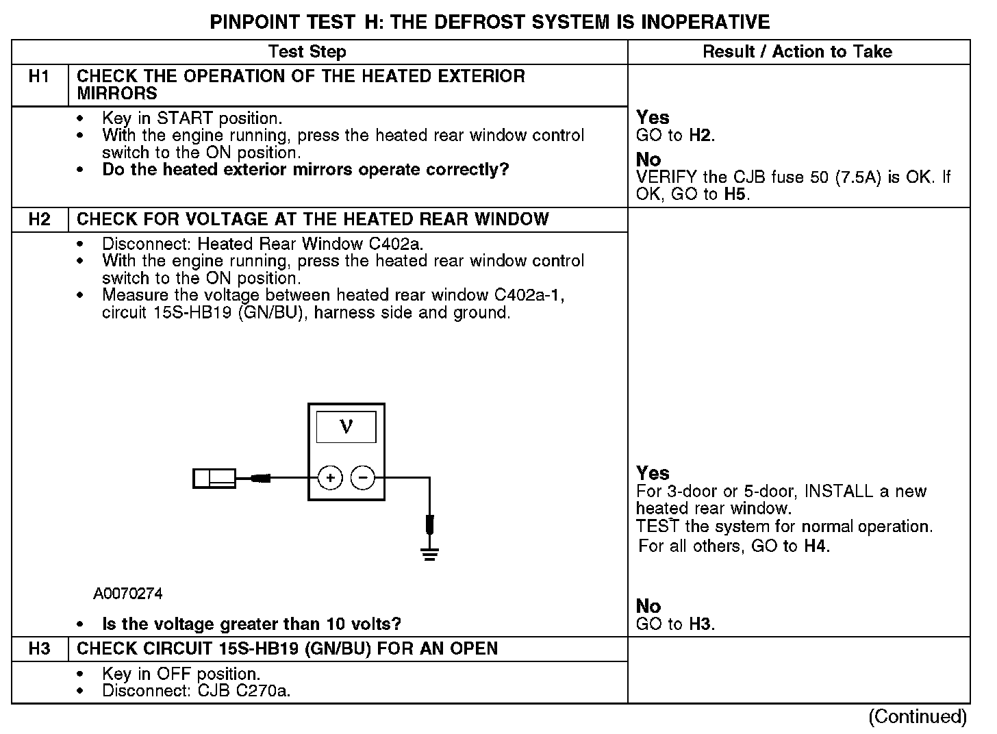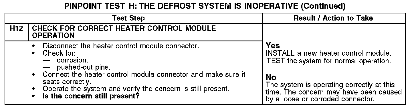PINPOINT TEST H: THE DEFROST SYSTEM IS INOPERATIVEH1-H3:
