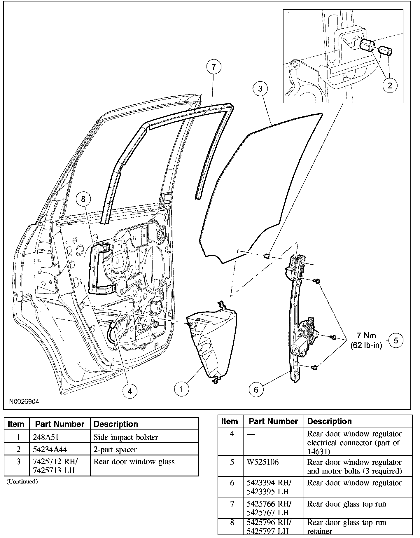 WINDOW REGULATOR AND MOTOR - REAR DOORExploded View