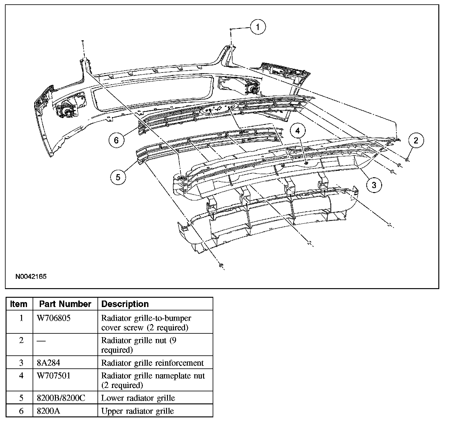 2. Remove the screws from the radiator grille-to-bumper cover.