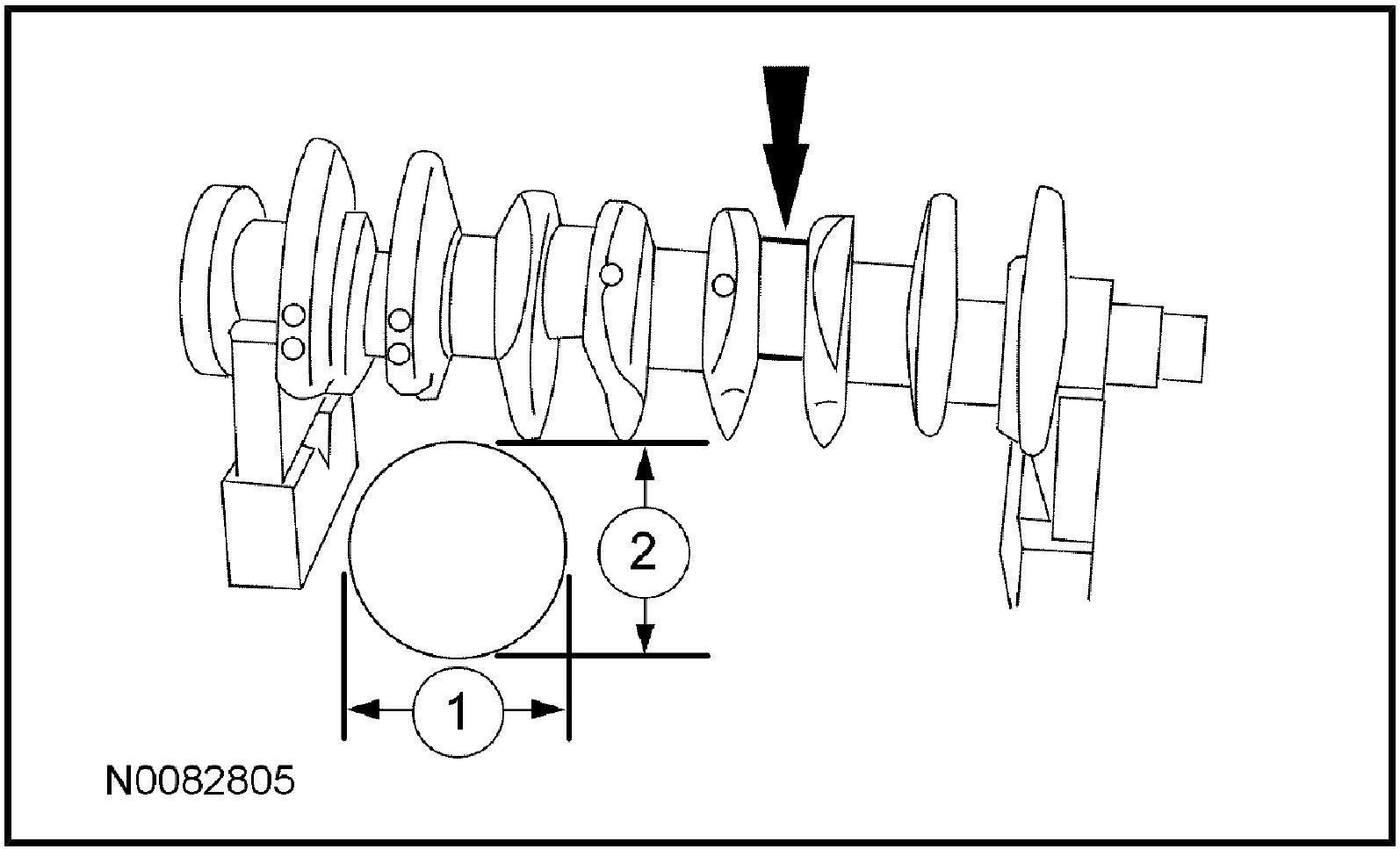 2. Measure each of the crankshaft main bearing journal diameters in at least 2 directions and record the smallest diameter for each journal.