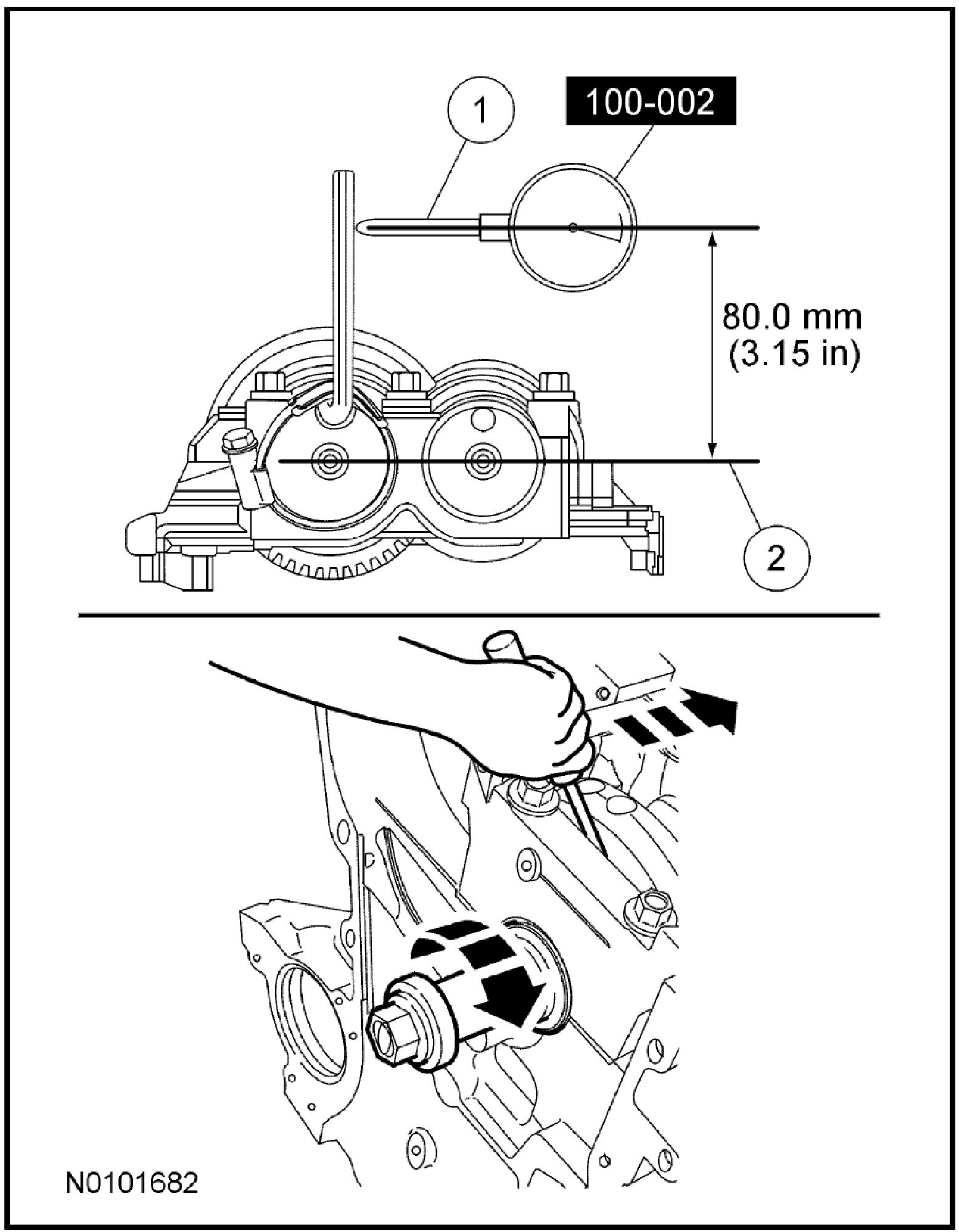 30. NOTE: The special tool will contact the crankshaft and prevent it from turning past TDC. However, the crankshaft can still be rotated in the counterclockwise direction. The crankshaft must remain at the TDC position until the timing drive components and crankshaft pulley are installed.
