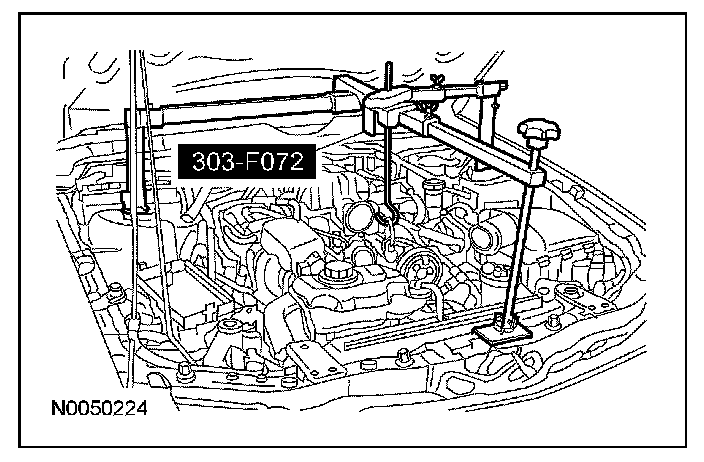 7. Using the Engine Support Bar and the Engine Lifting Bracket Set, raise and support the engine.