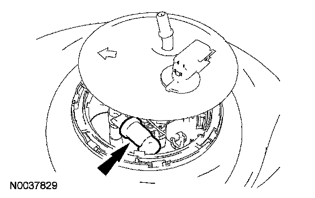 4. NOTE: Make sure the alignment arrows on the FP module and the fuel tank meet before tightening the FP module lock ring.