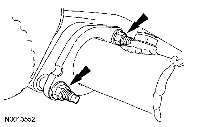 ^ Starting with the upper nut, alternately tighten, in 10 Nm (89 inch lbs.) increments, the LH catalytic converter-to-exhaust manifold nuts to specification.