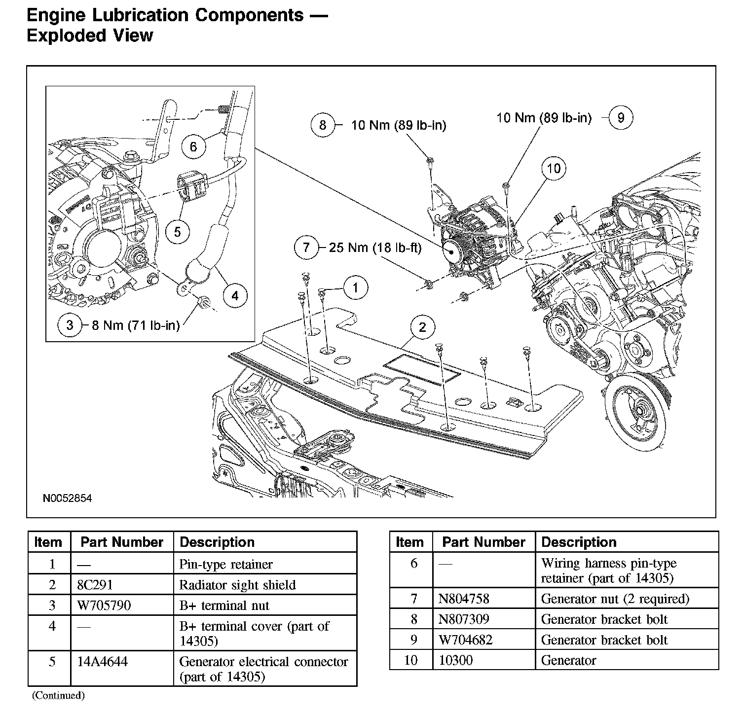 Engine Lubrication Components - Exploded View: