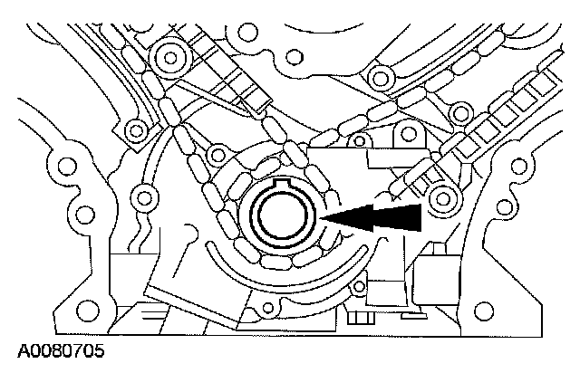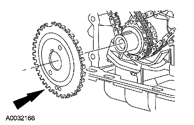 - Remove the LH timing chain and crankshaft sprocket.