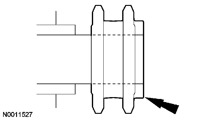14. CAUTION: Damage to the camshaft phaser sprocket assembly will occur if mishandled or used as a lifting or leveraging device.