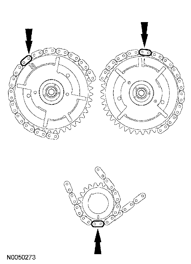 Position the RH timing chain on the camshaft sprocket. Make sure the camshaft sprocket timing mark is aligned with the copper (marked) chain link.