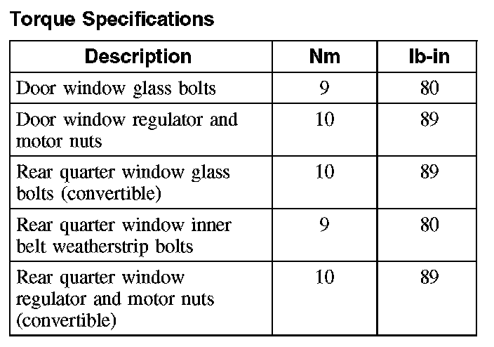 Torque Specifications: