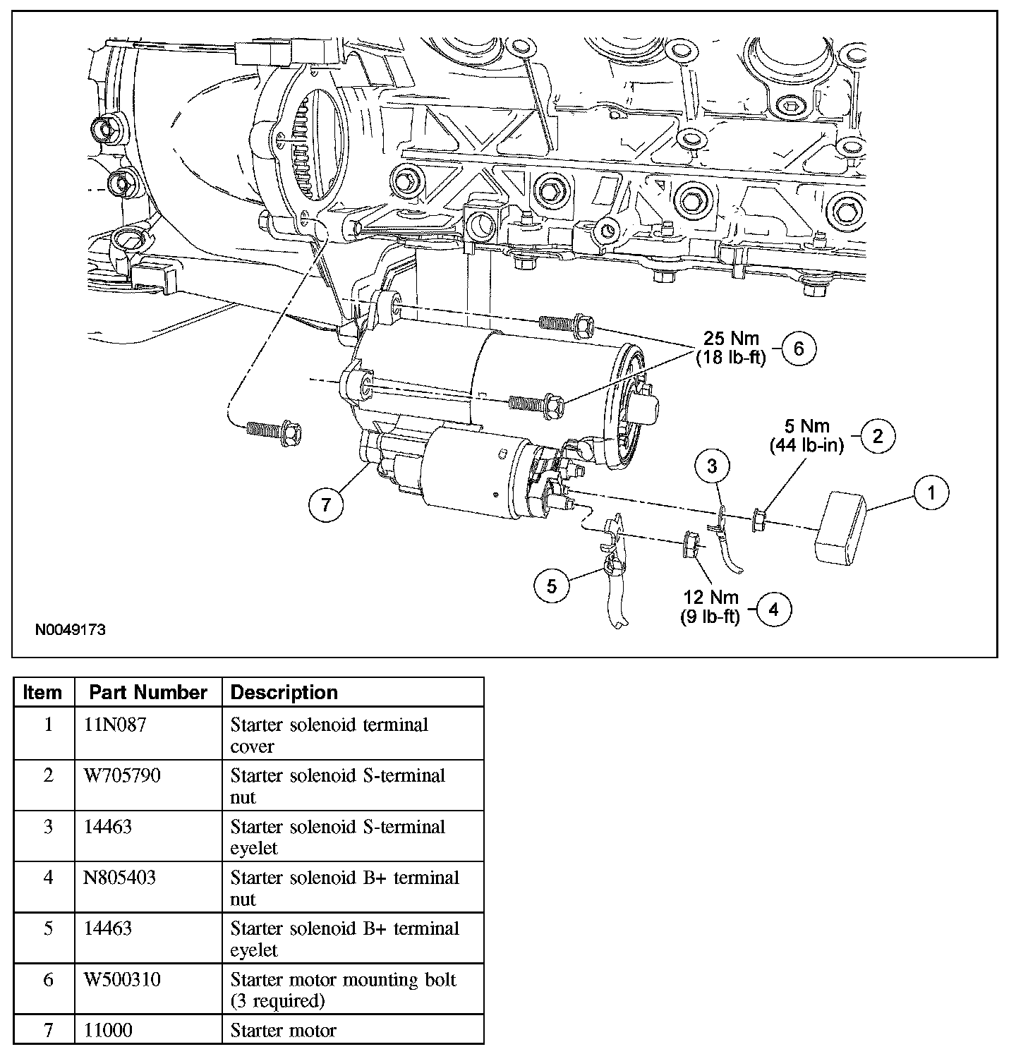 - When working in area of the starter motor, be careful to avoid touching hot exhaust components. Failure to follow these instructions can result in personal injury.