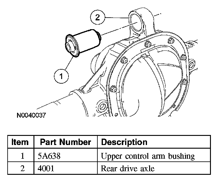 5. CAUTION: Tighten the upper control arm rear nut with the suspension at curb height.