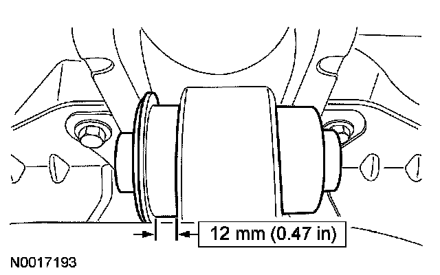 3. Install the bushing so there is a 12 mm (0.47 inch) gap between the bushing flange and the rear axle bracket.