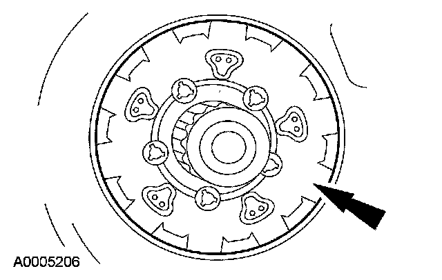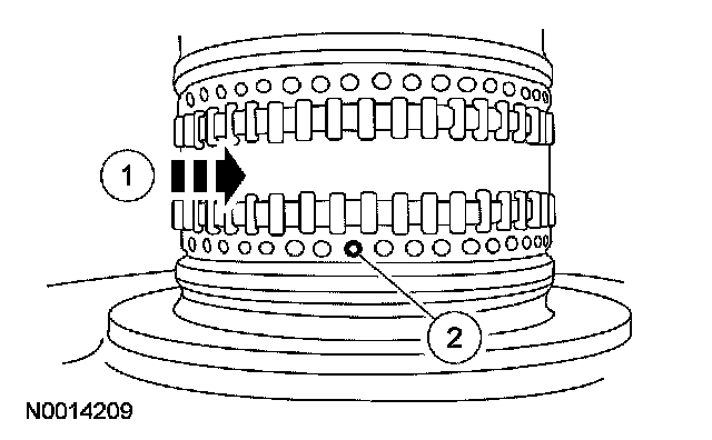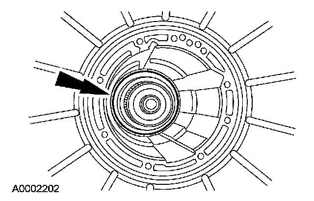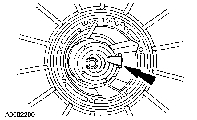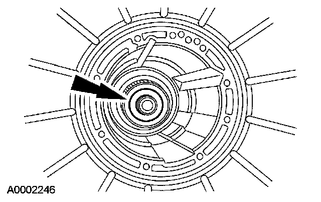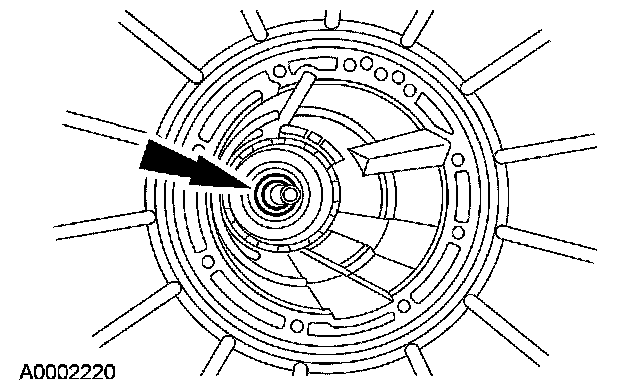 1. Rotate the center support bearing to locate the direct clutch feed hole.