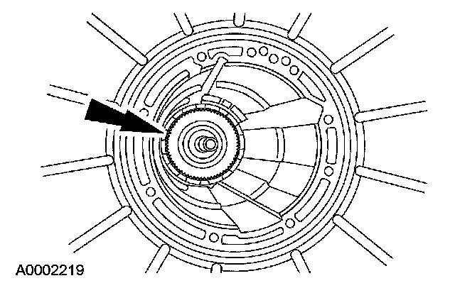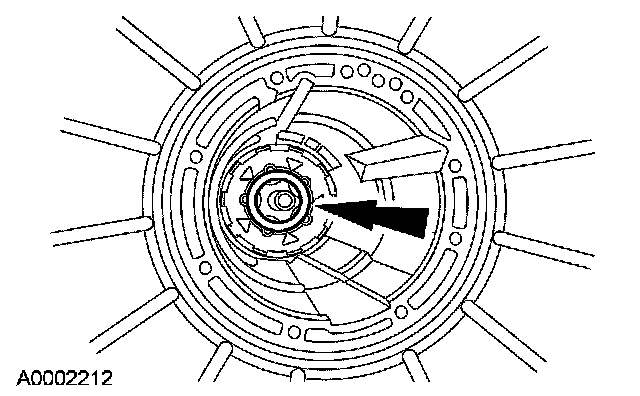 Remove the low/reverse brake drum and one-way clutch assembly by rotating it clockwise.
