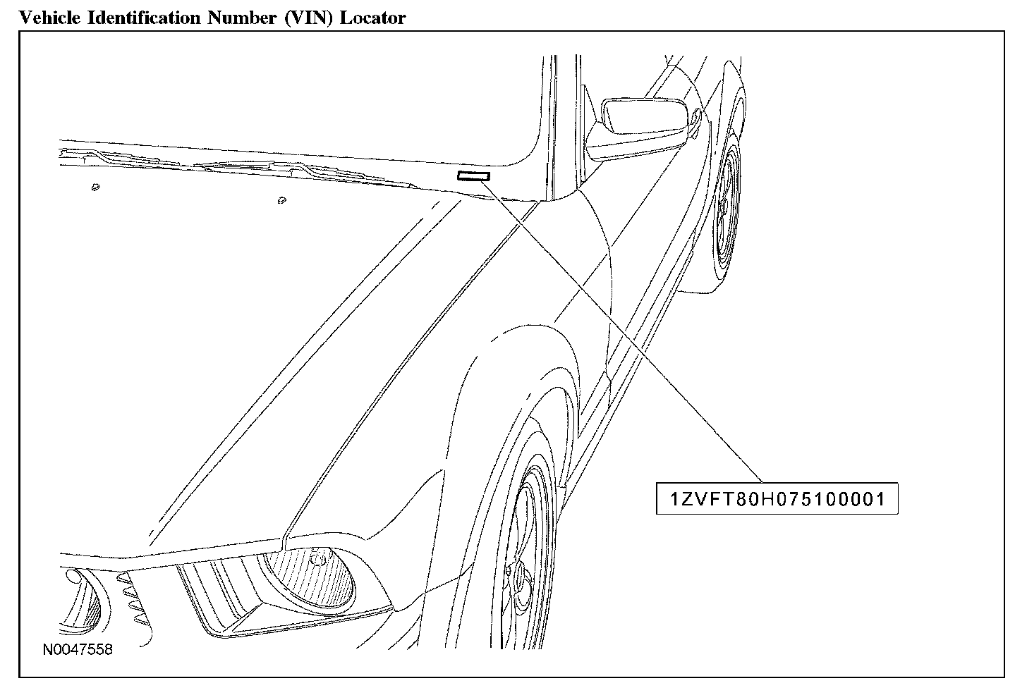 The vehicle identification number (VIN) is a 17-digit alphanumeric code. The VIN is stamped on a metal tab riveted to the instrument panel, top upper left of the dash. The VIN number is also found on the vehicle certification (VC) label.