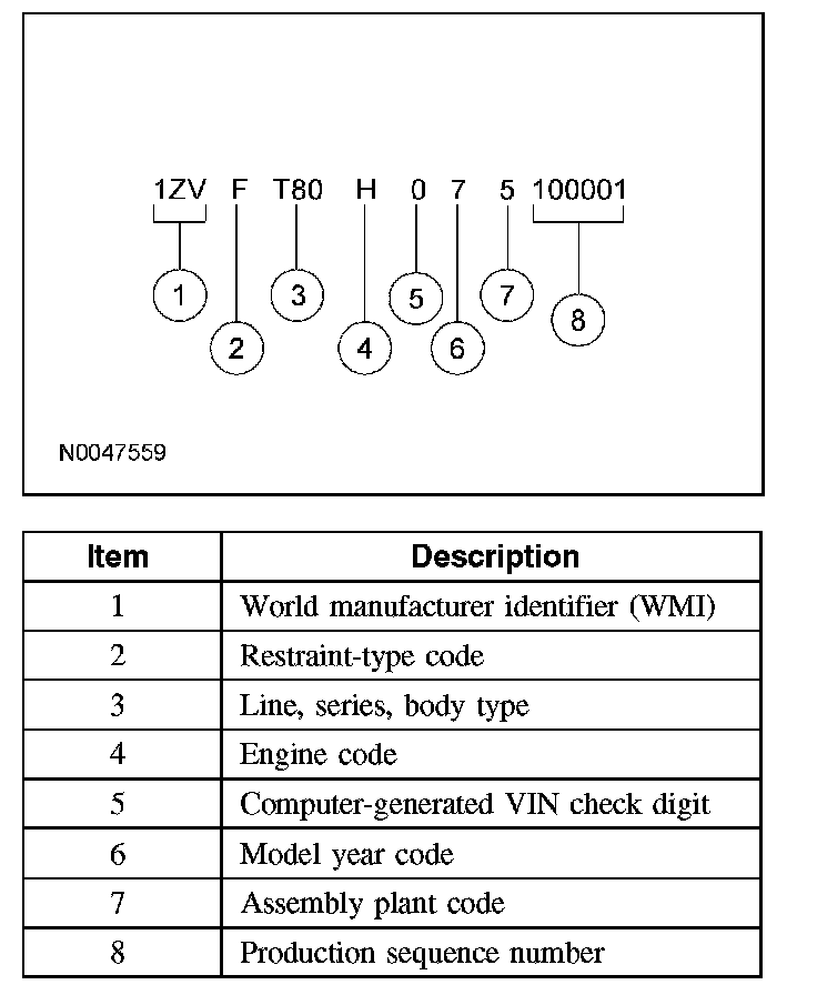 Positions 5 through 7 indicate vehicle line, series and body type.