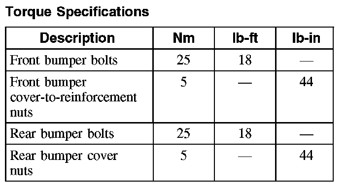 Torque Specifications: