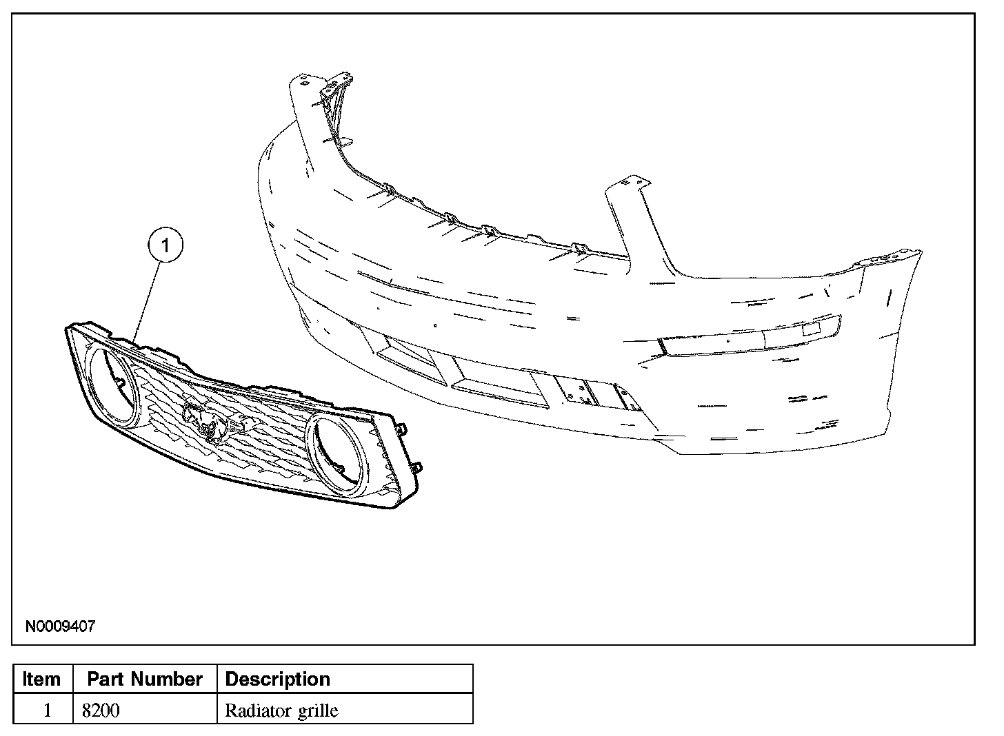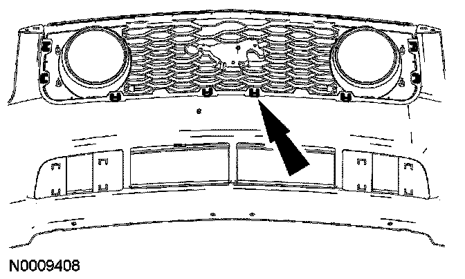 2. Release the radiator grille retaining clips from the front bumper cover and remove the radiator grille.
