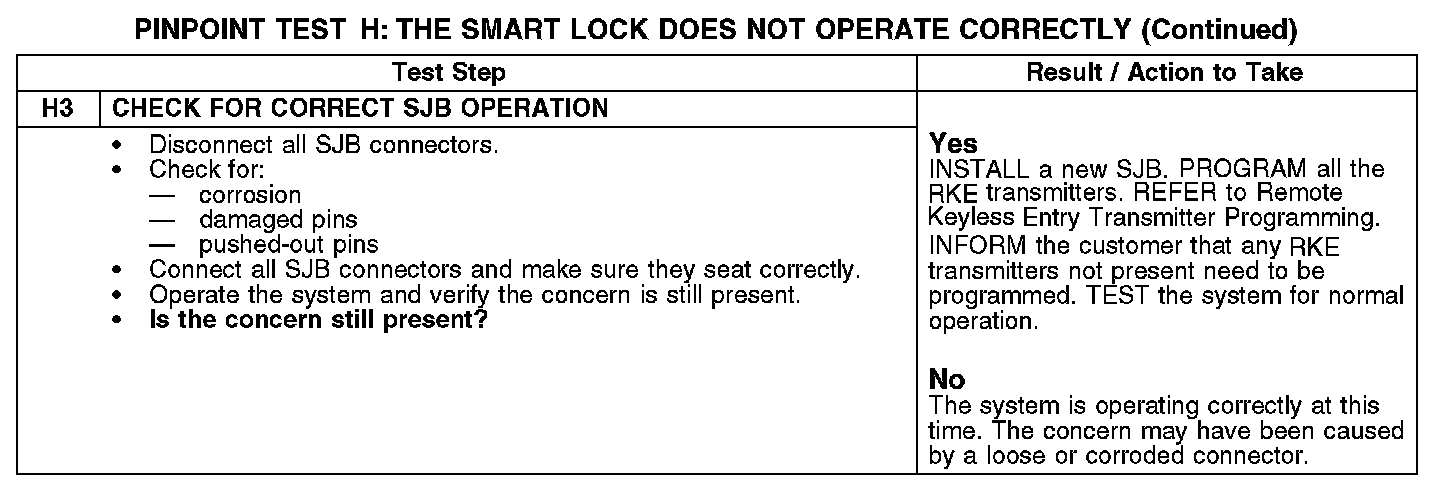 PINPOINT TEST H: THE SMART LOCK DOES NOT OPERATE CORRECTLYH1-H2: