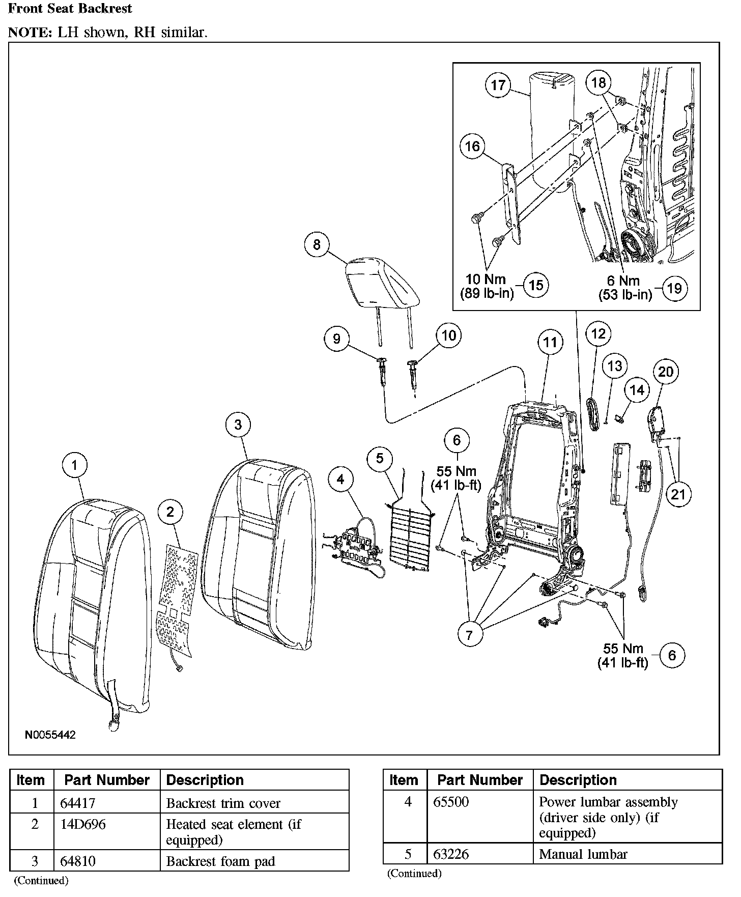 LUMBAR ASSEMBLYFront Seat Backrest (Part 1):