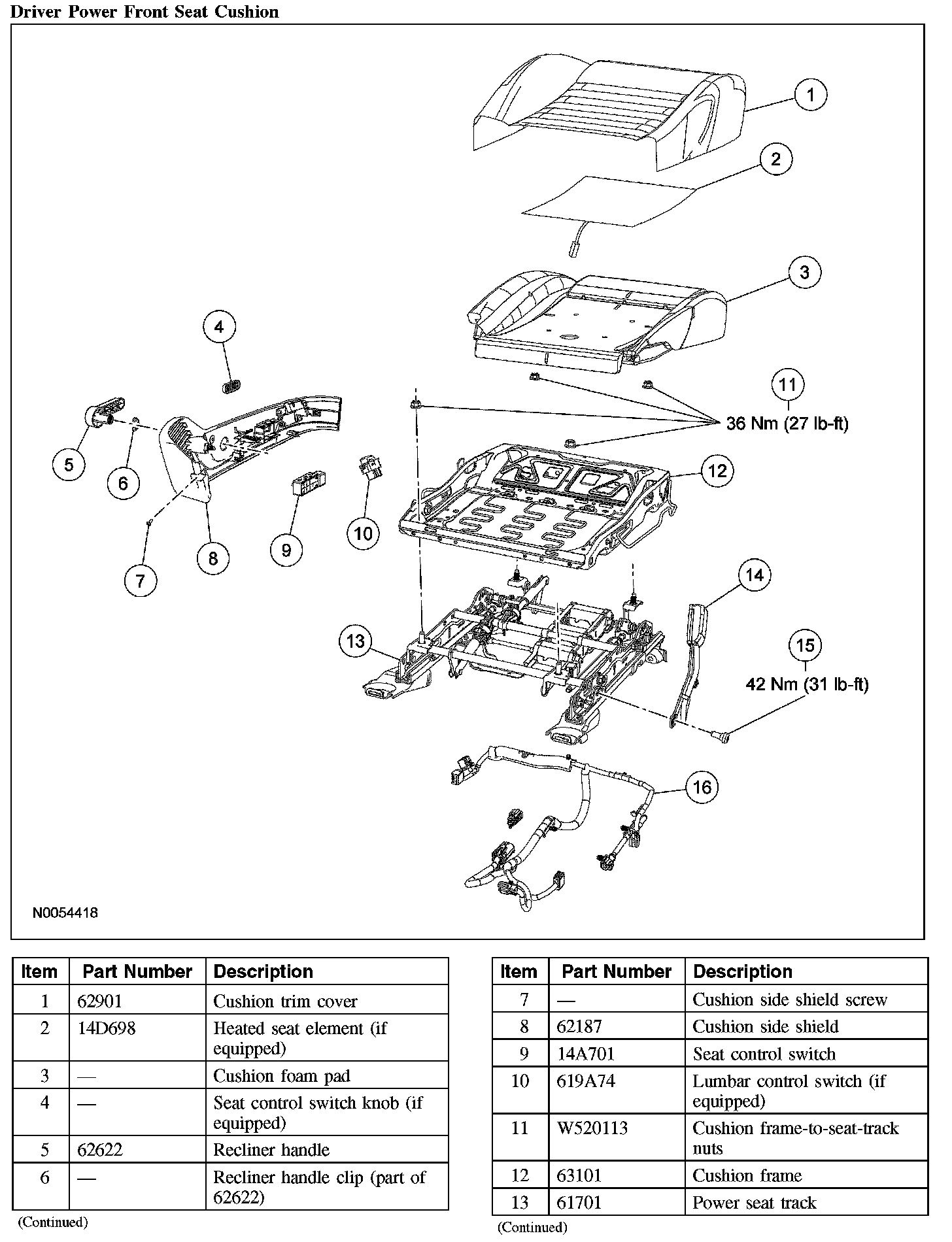 Driver Power Front Seat Cushion (Part 1):