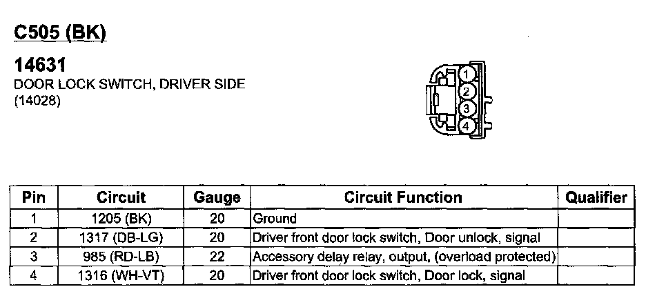 Door Lock Switch, Driver Side
