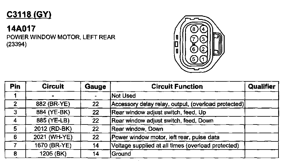 Power Window Motor, Left Rear