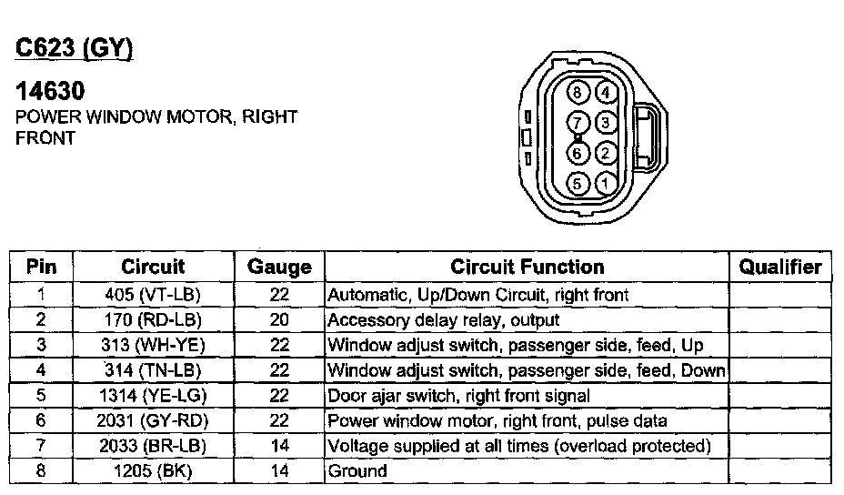 Power Window Motor, Right Front