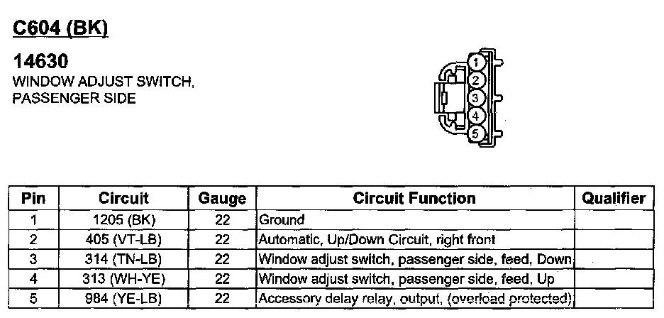 Window Adjust Switch, Passenger Side