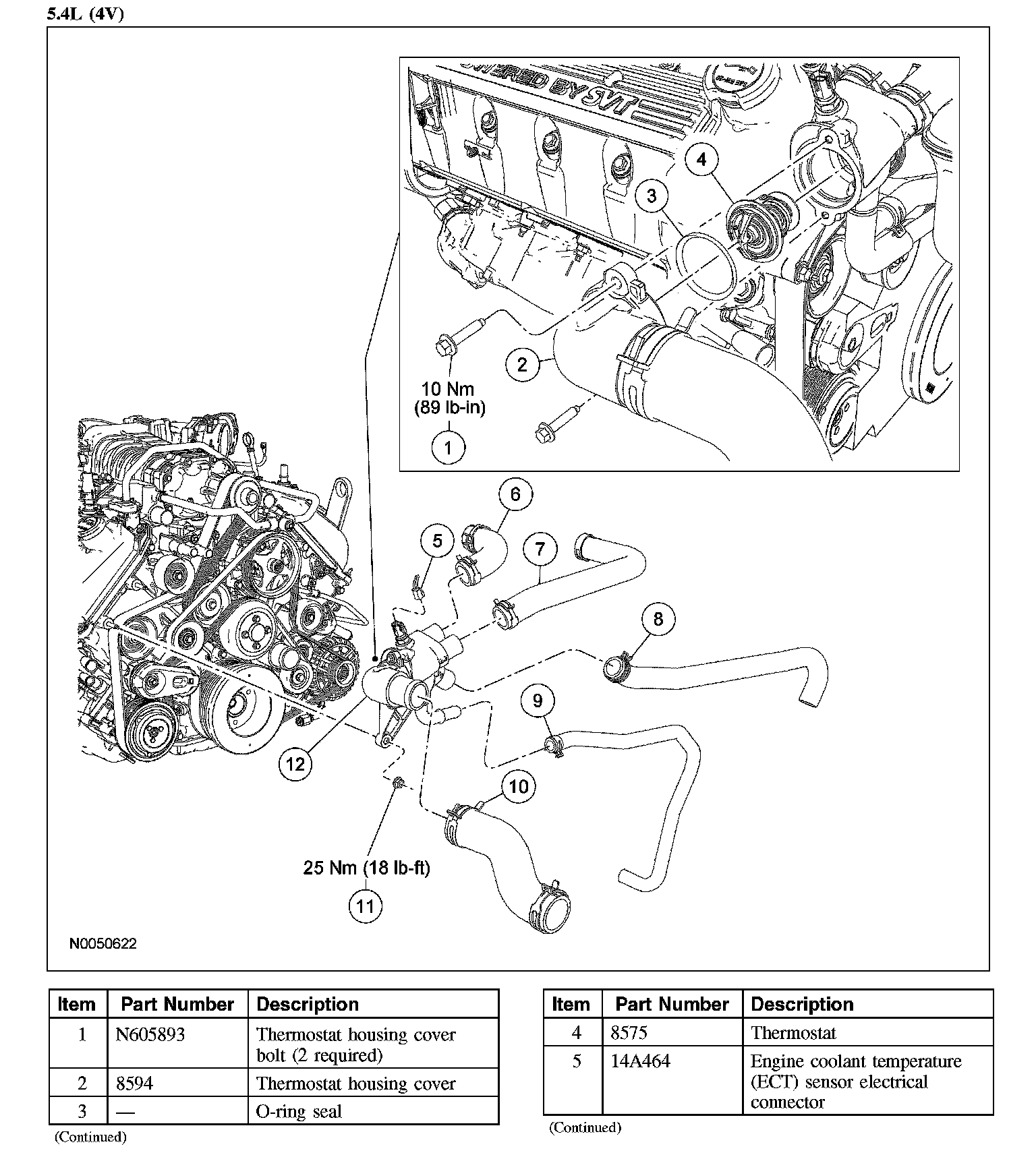 Thermostat and Thermostat Housing - Exploded View 5.4L (4V):