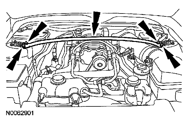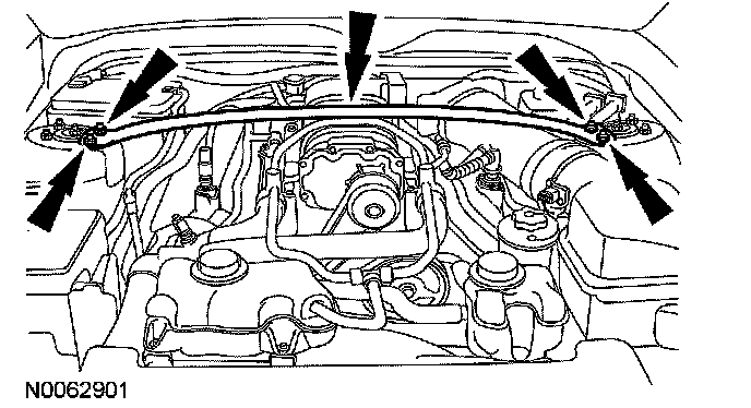 21. Disconnect the 2 upper radiator hoses and the 2 coolant vent hoses from the intake manifold.