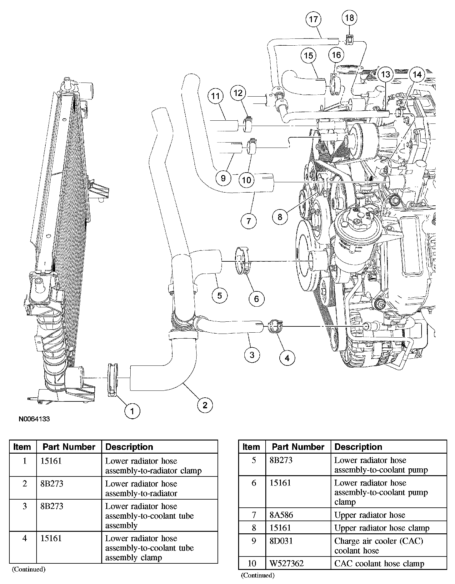 15. Disconnect the coolant hoses from the charge air cooler (CAC).