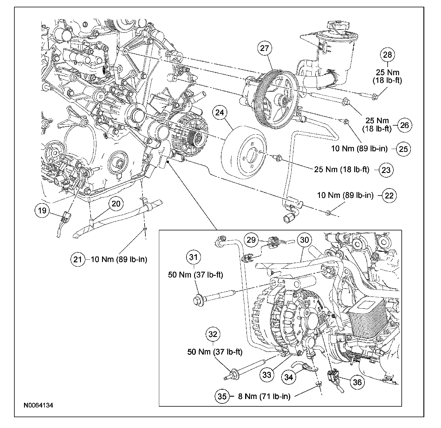 - Tighten to 25 Nm (18 ft. lbs.).