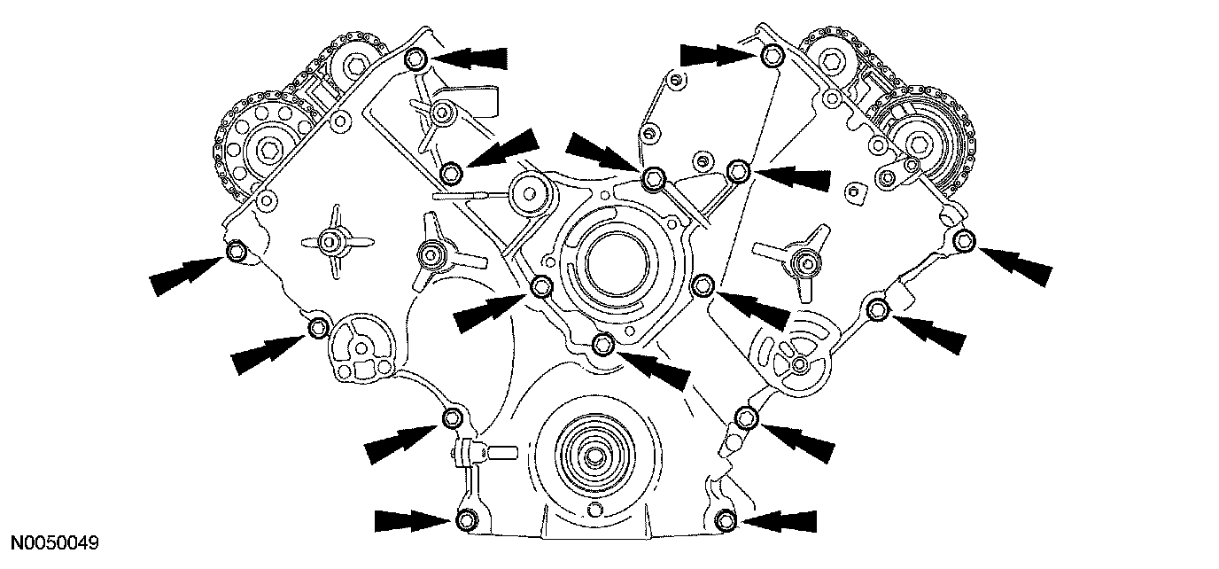 1. NOTE: If the engine front cover is not secured within 4 minutes, the sealant must be removed and the sealing area cleaned with metal surface cleaner. Allow to dry until there is no sign of wetness or 4 minutes, whichever is longer. Failure to follow this procedure can result in future oil leakage.