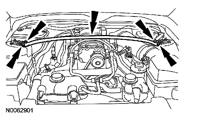 5. Remove the 4 nuts and the strut tower cross brace.