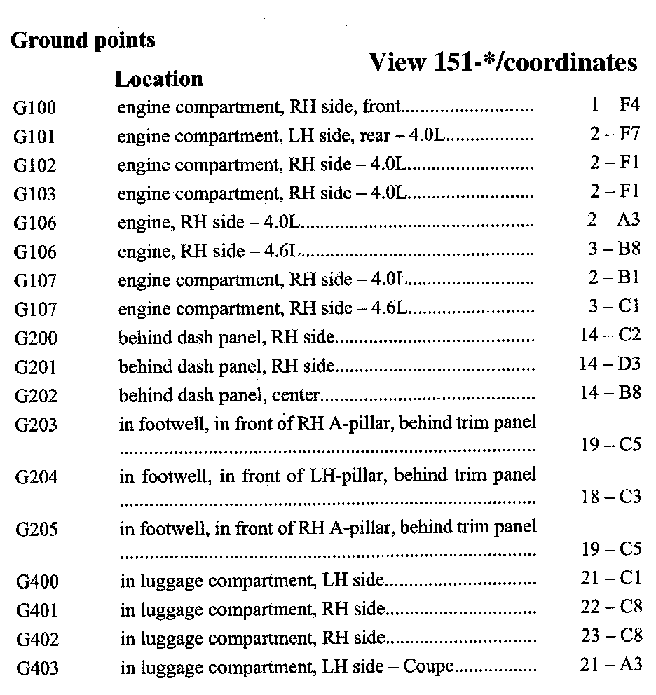 If a link on the Grounds Location Index to a View is not provided, that means that the Grounds and/or View in question does NOT apply to the vehicle model selected.