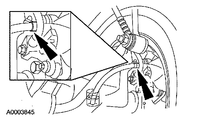 12. Repeat Steps 8 through 11 for the LH front brake caliper bleeder screw.