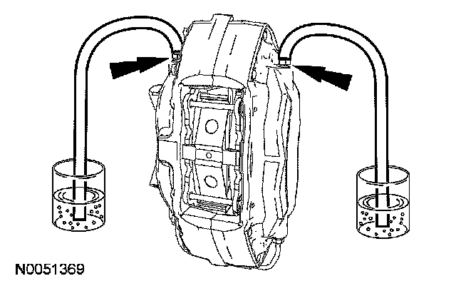 NOTE: If the hydraulic control unit (HCU), or any component upstream of the HCU are installed new, carry out the Brake System Pressure Bleeding procedure first without the scan tool, followed by the Brake System Bleed procedure using the scan tool. The Component Bleeding - Rear Brake Caliper procedure is not required as new rear calipers were not installed.