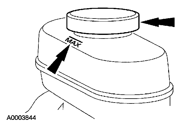 2. Clean all the dirt from the area, remove the brake master cylinder reservoir cap and fill the brake master cylinder reservoir with clean, specified brake fluid.