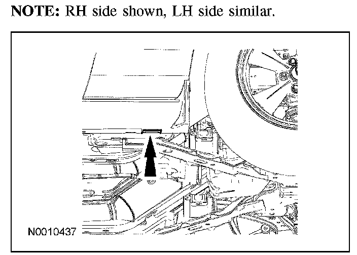 - Do not allow the lift adapters to contact the steering linkage, suspension arms, stabilizer arms, or to compress the lower suspension arm stabilizer bar insulator. Damage to the suspension, exhaust and steering linkage components may occur if care is not exercised when positioning the hoist adapters prior to lifting the vehicle.